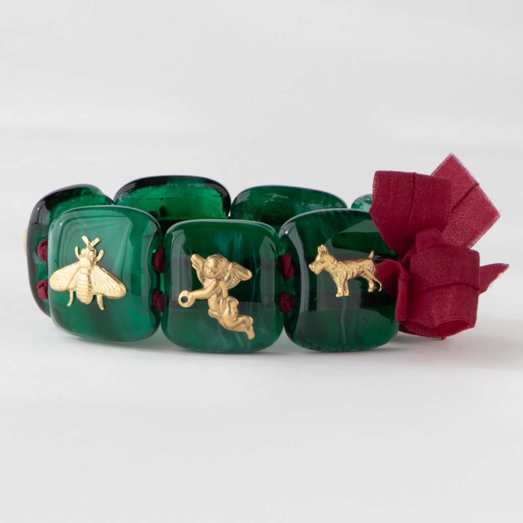 VETROFUSO(ベトロフーゾ) モチーフブレスレットS マーブルグリーンxエンジ 54014