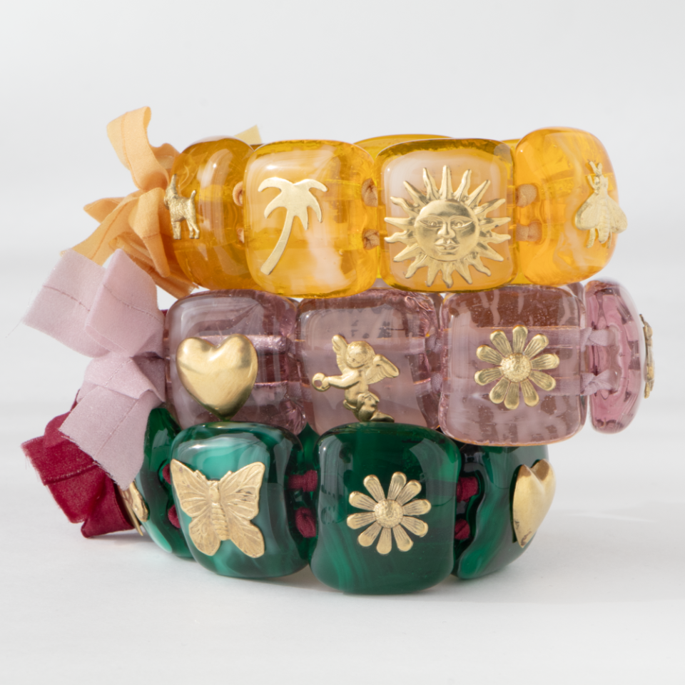 イタリア・ムラーノ島で作られたムラーノガラスを使って制作されたブレスレット。季節を問わずコーディネートに個性をプラスしてくれる魅惑のアクセサリーです。