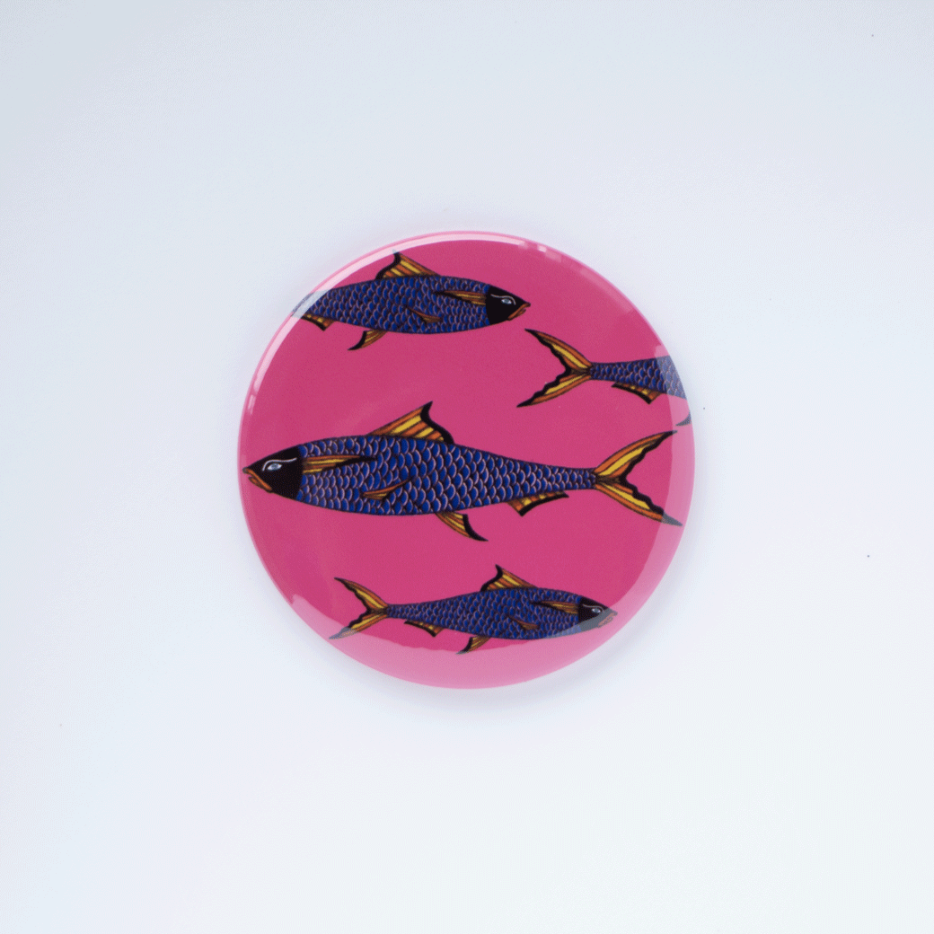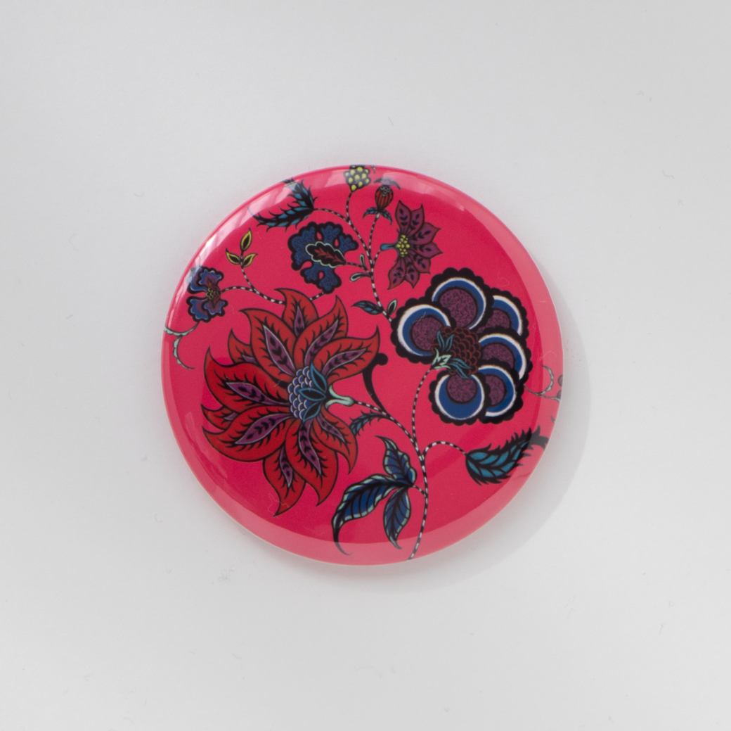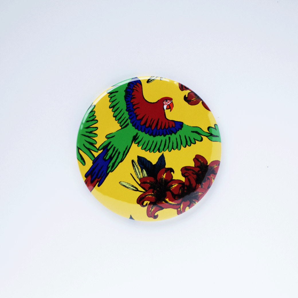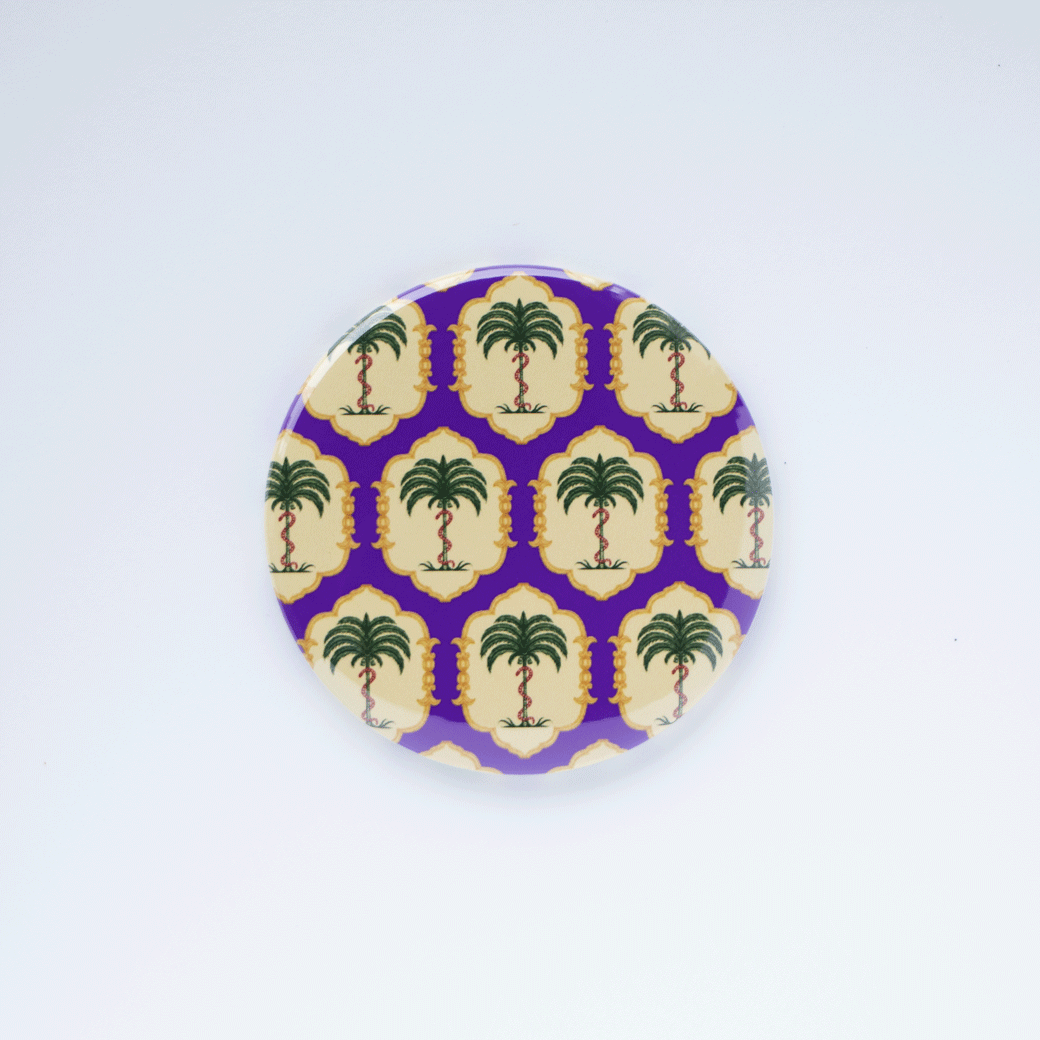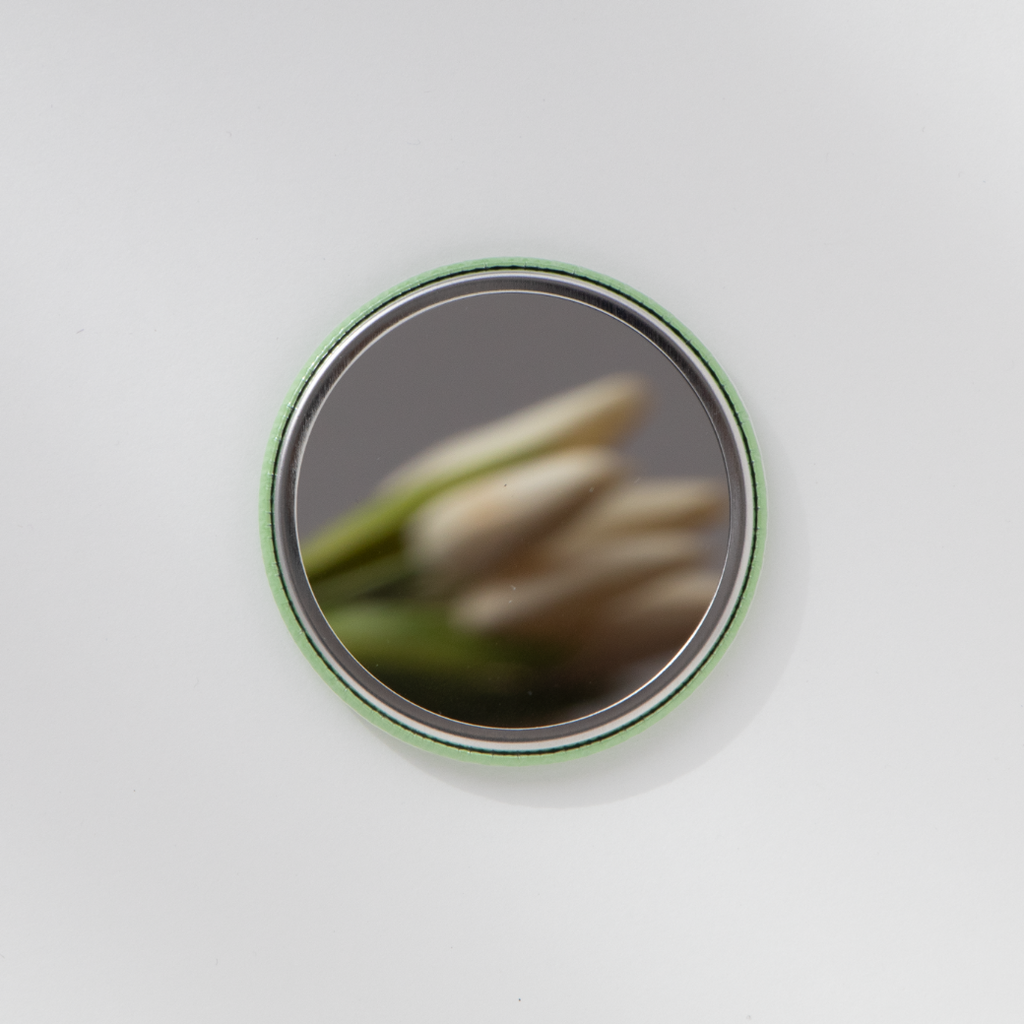 ムラカミ ミホさんが手掛けるデザイン缶バッチ風のデザインで持っているだけでお洒落なミラーです。