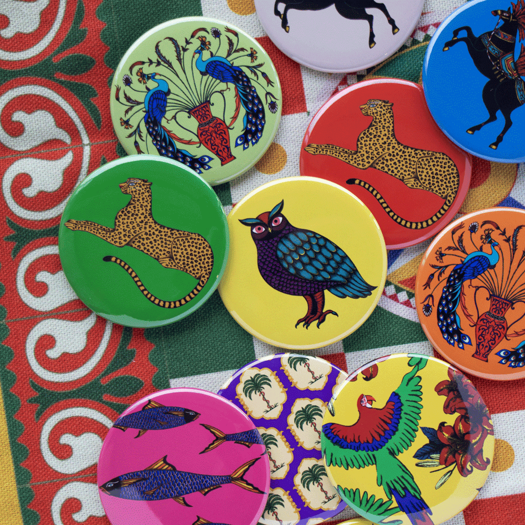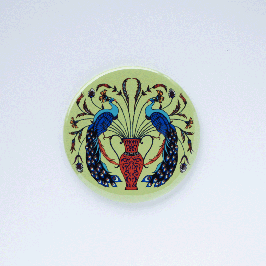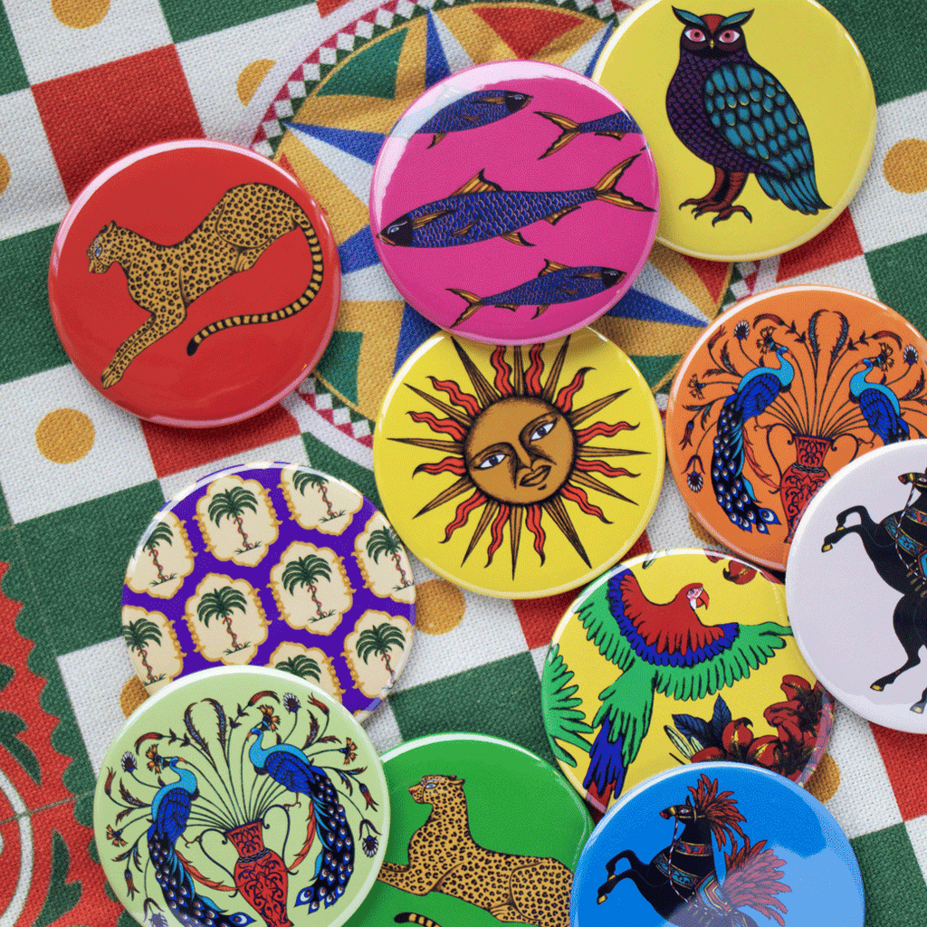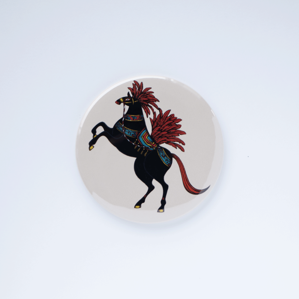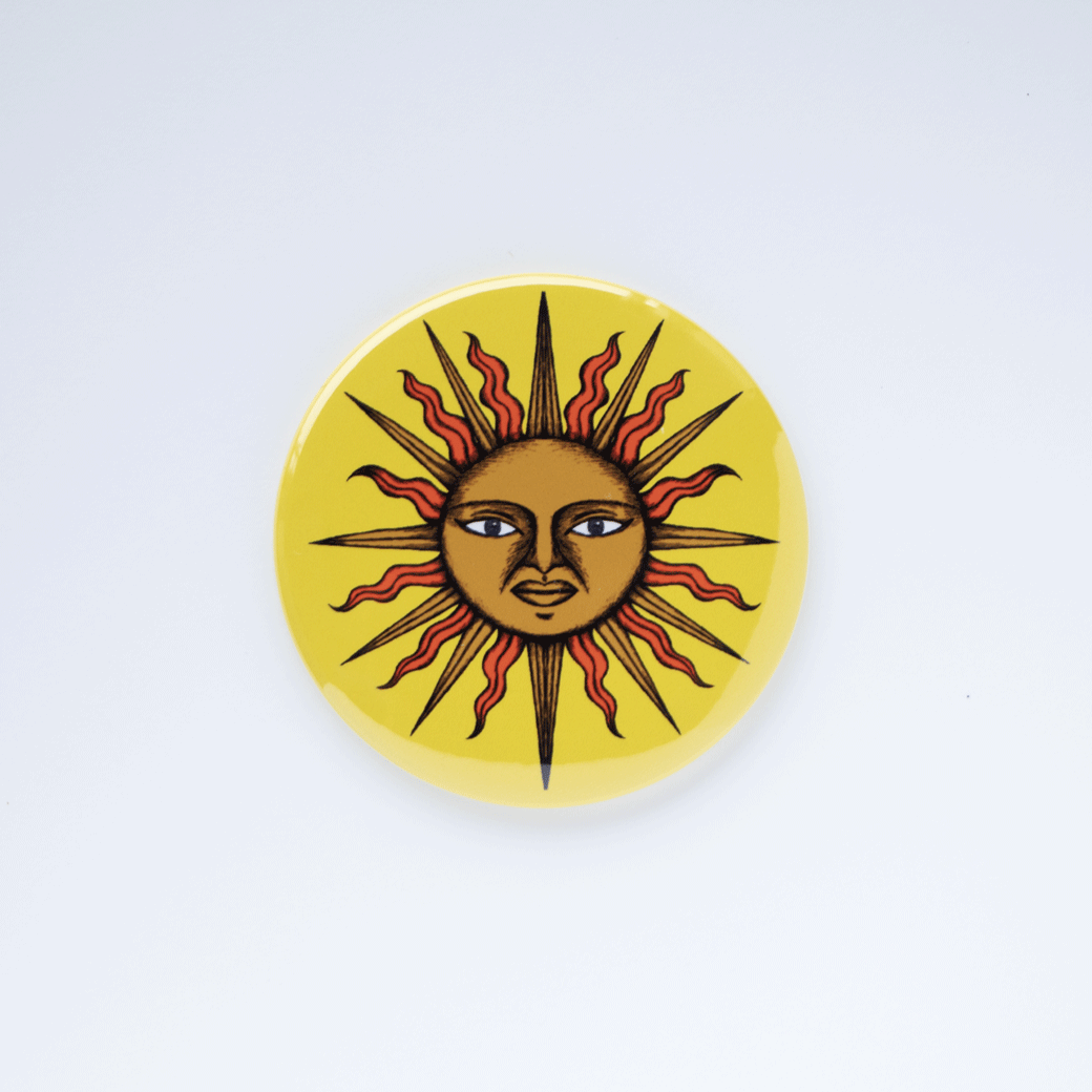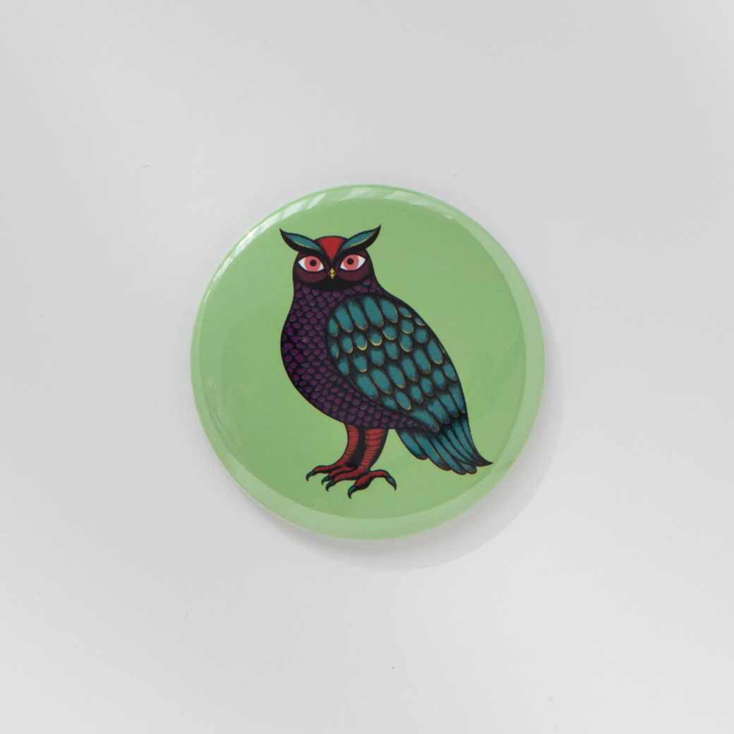 ムラカミ ミホさんが手掛けるデザイン缶バッチ風のデザインで持っているだけでお洒落なミラーです。