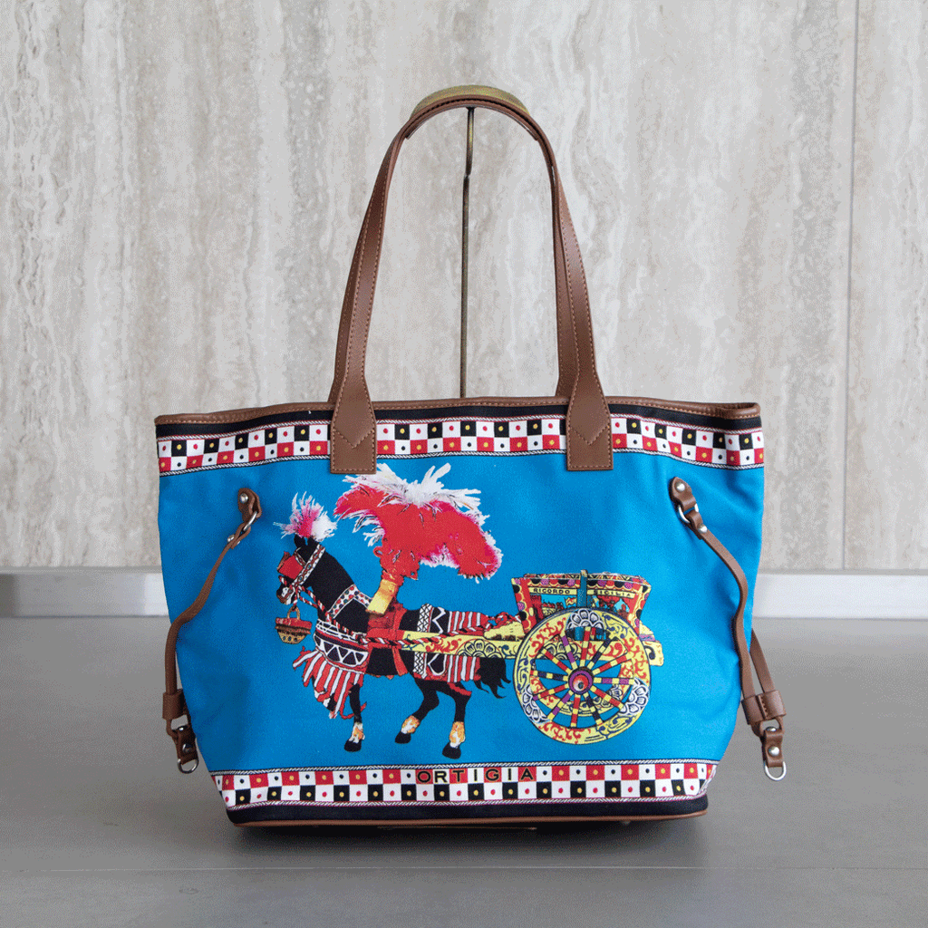 ORTIGIA(オルティージャ) キャンバスバッグ 馬車 ブルー