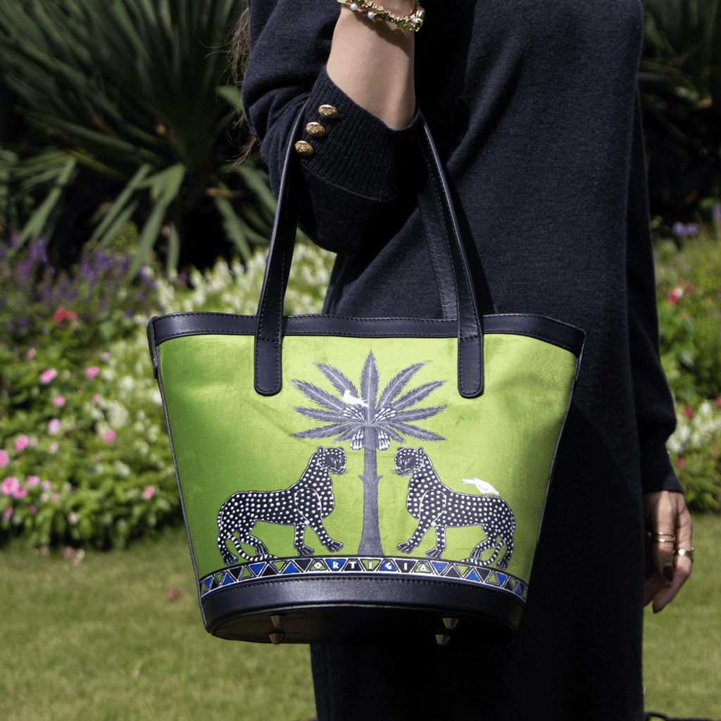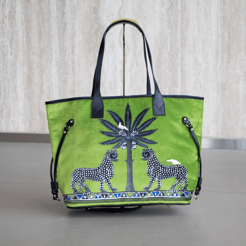 ORTIGIA(オルティージャ) ベルベッドバッグ ヒョウ グリーン