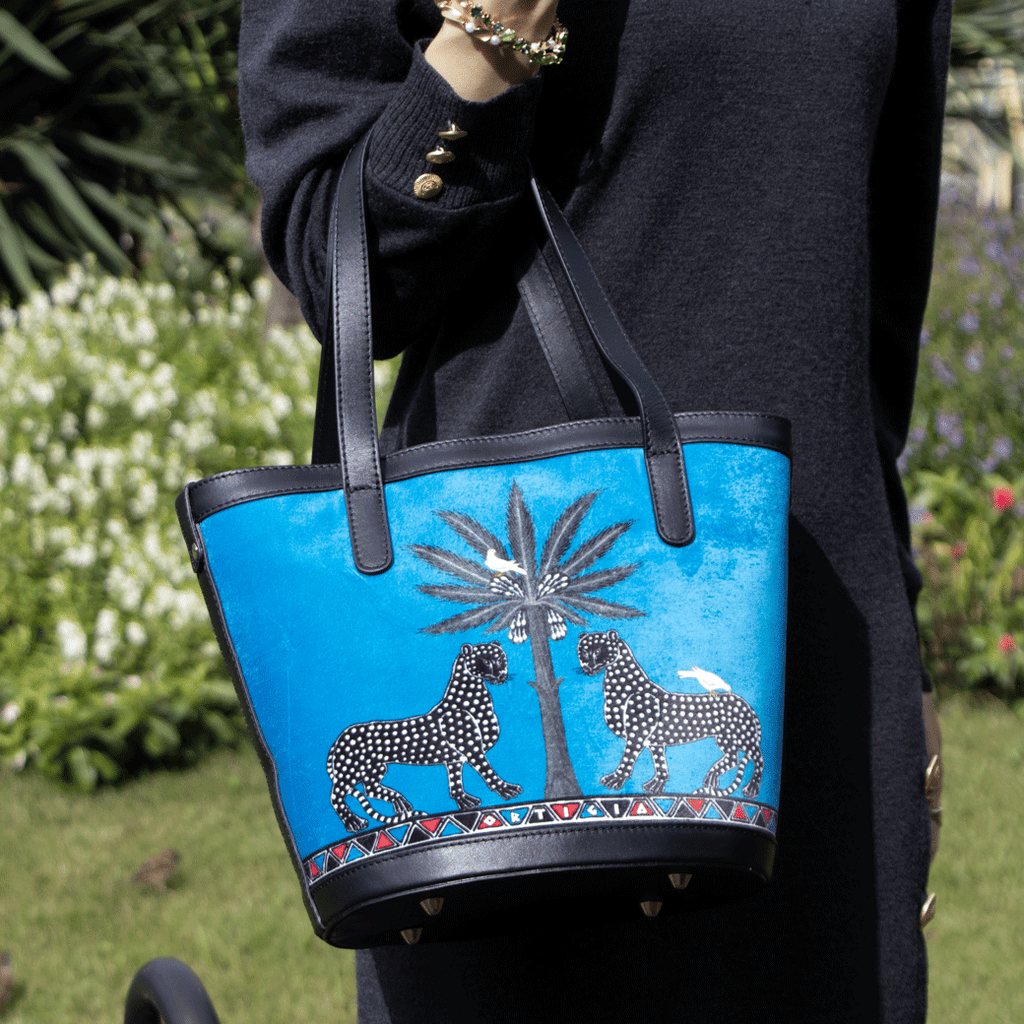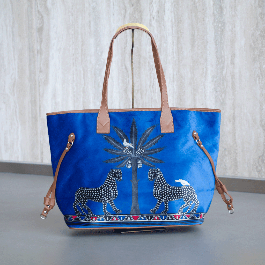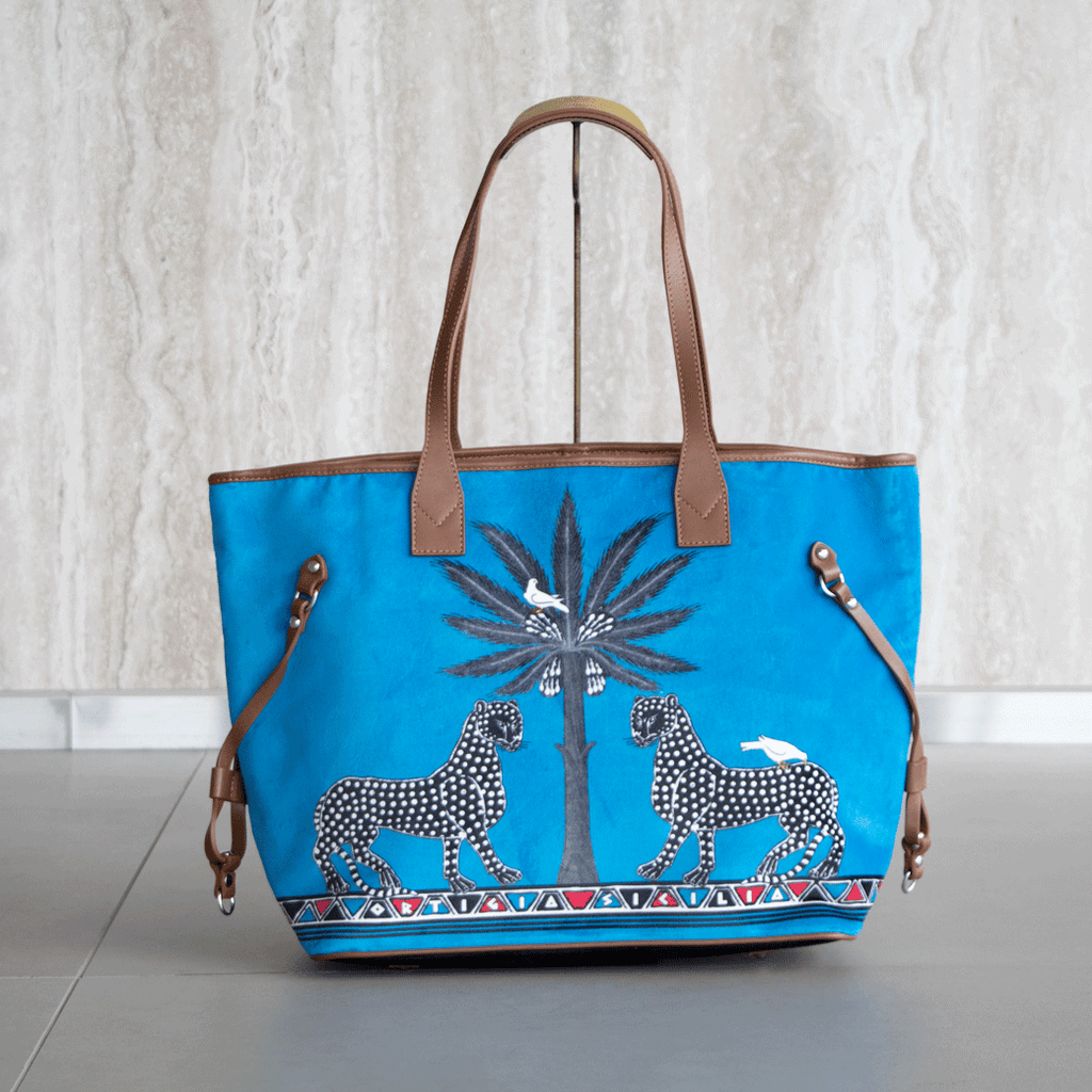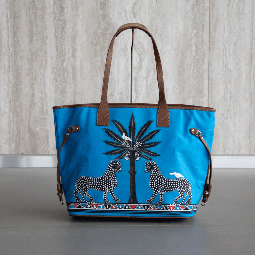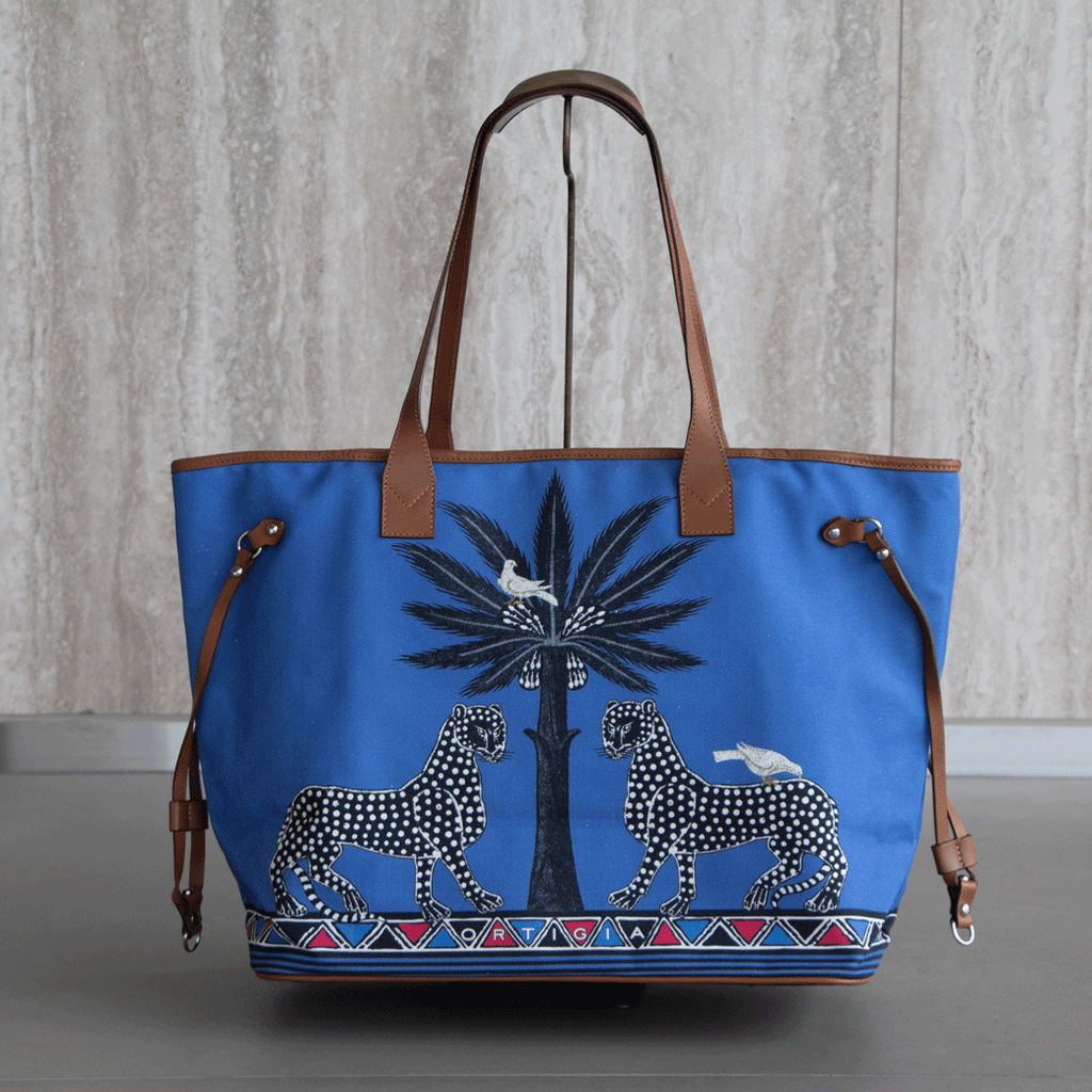 ORTIGIA(オルティージャ) キャンバスバッグ ヒョウ深いブルー
