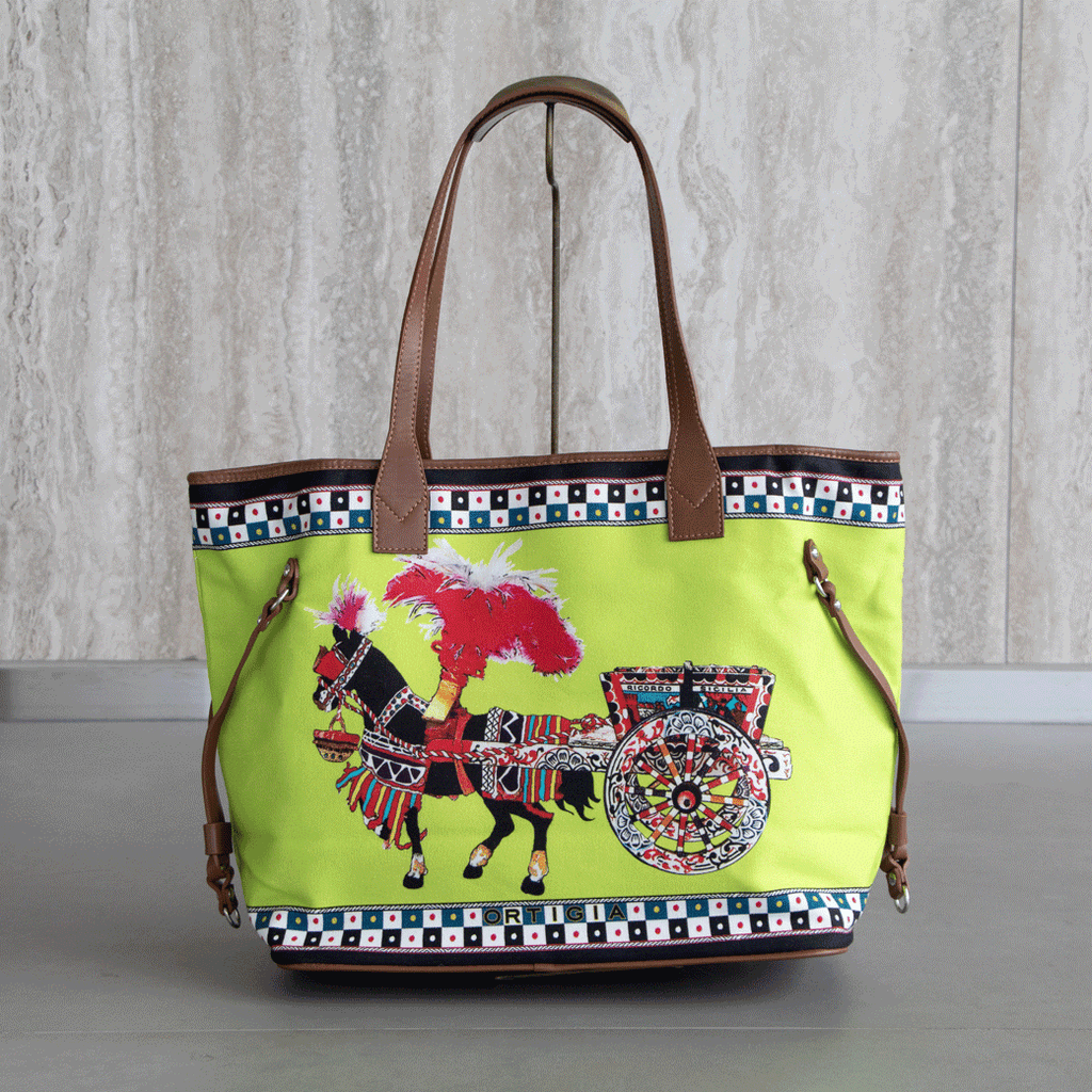 ORTIGIA(オルティージャ) キャンバスバッグ 馬車 ライムグリーン
