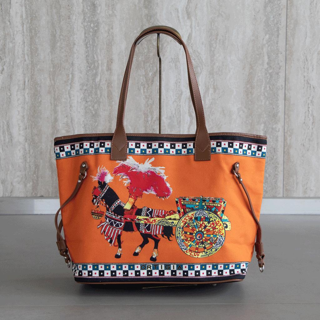 ORTIGIA(オルティージャ) キャンバスバッグ 馬車 オレンジ