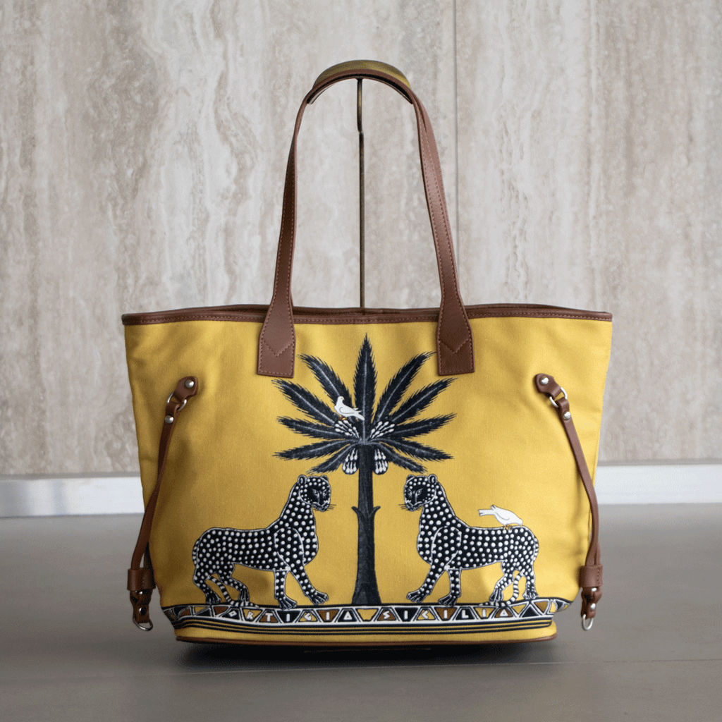 ORTIGIA(オルティージャ) キャンバスバッグ ヒョウイエロー