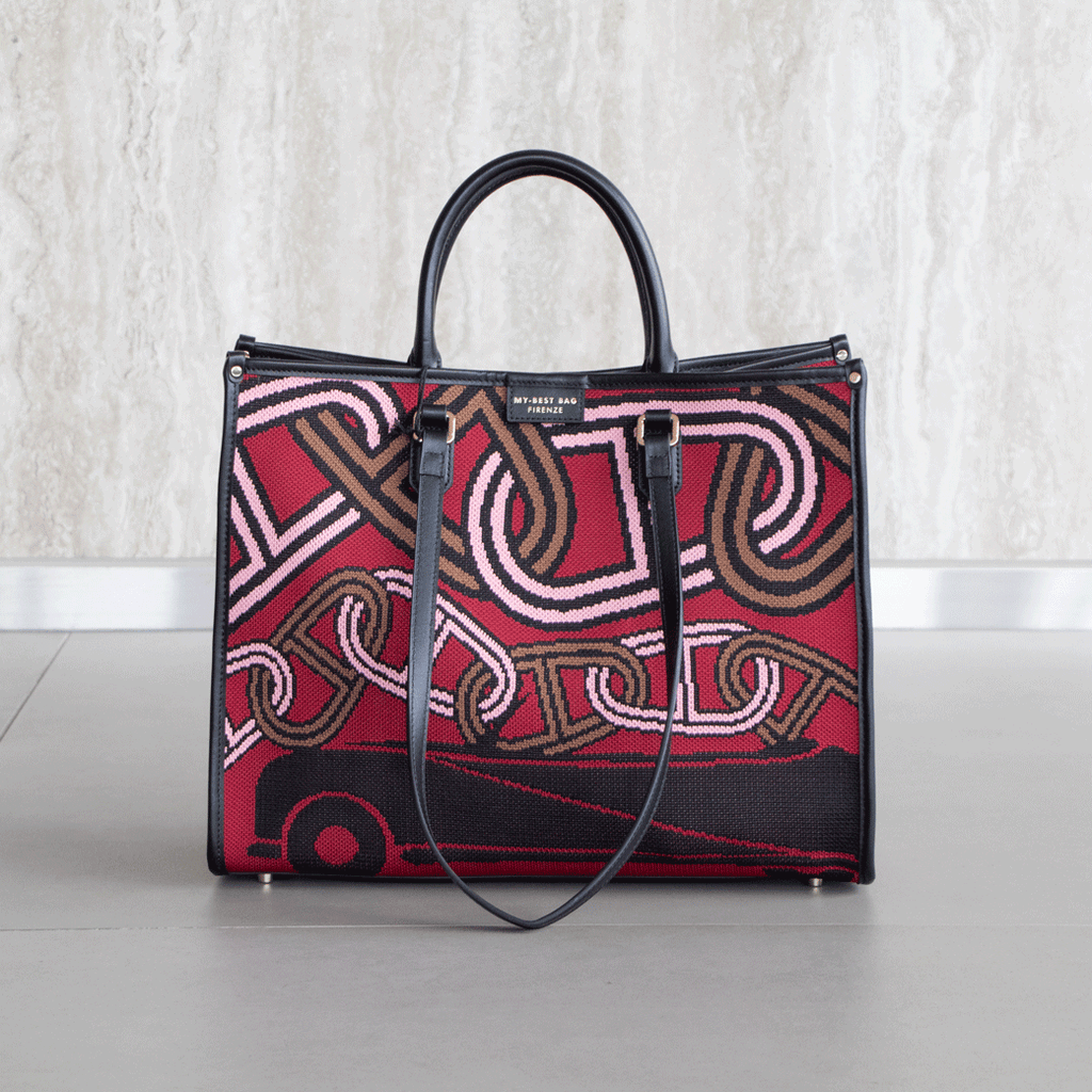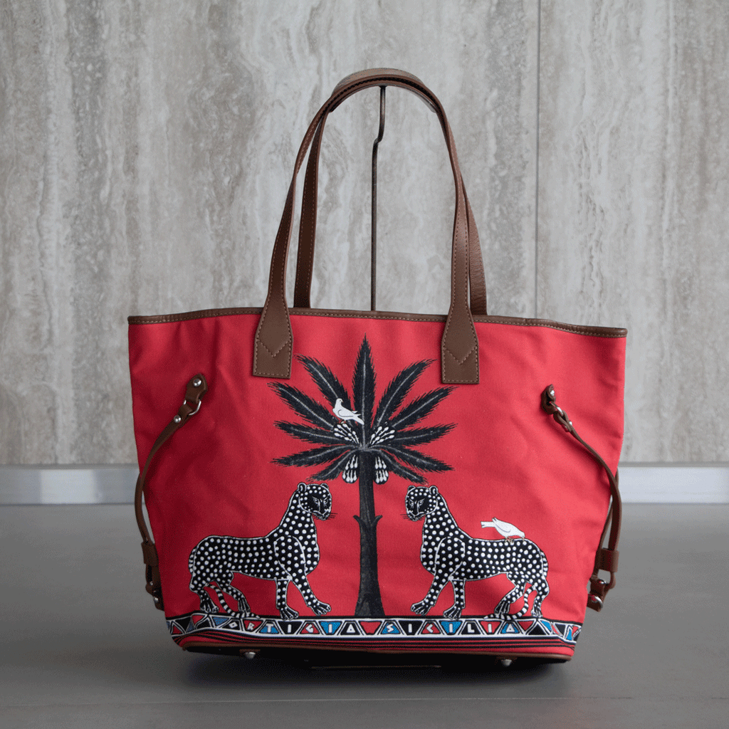 ORTIGIA(オルティージャ) キャンバスバッグ ヒョウレッド
