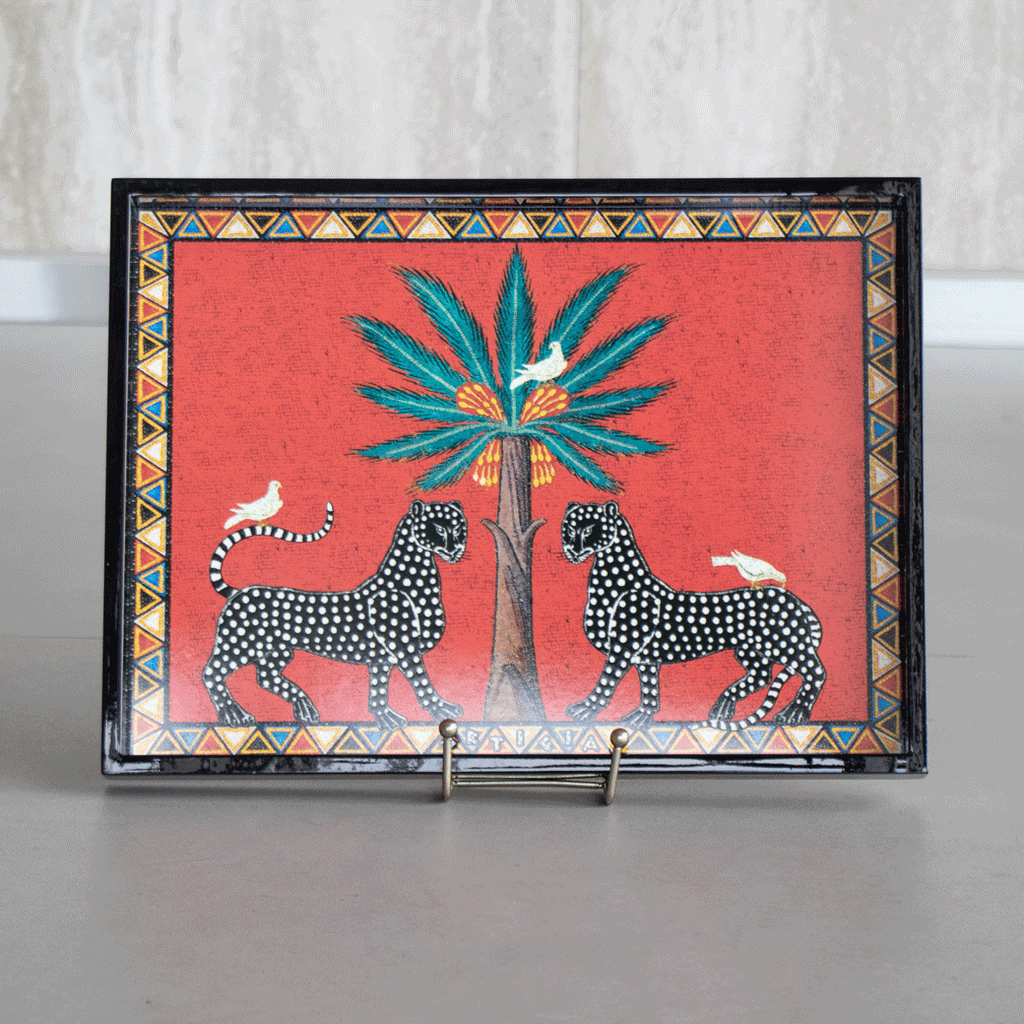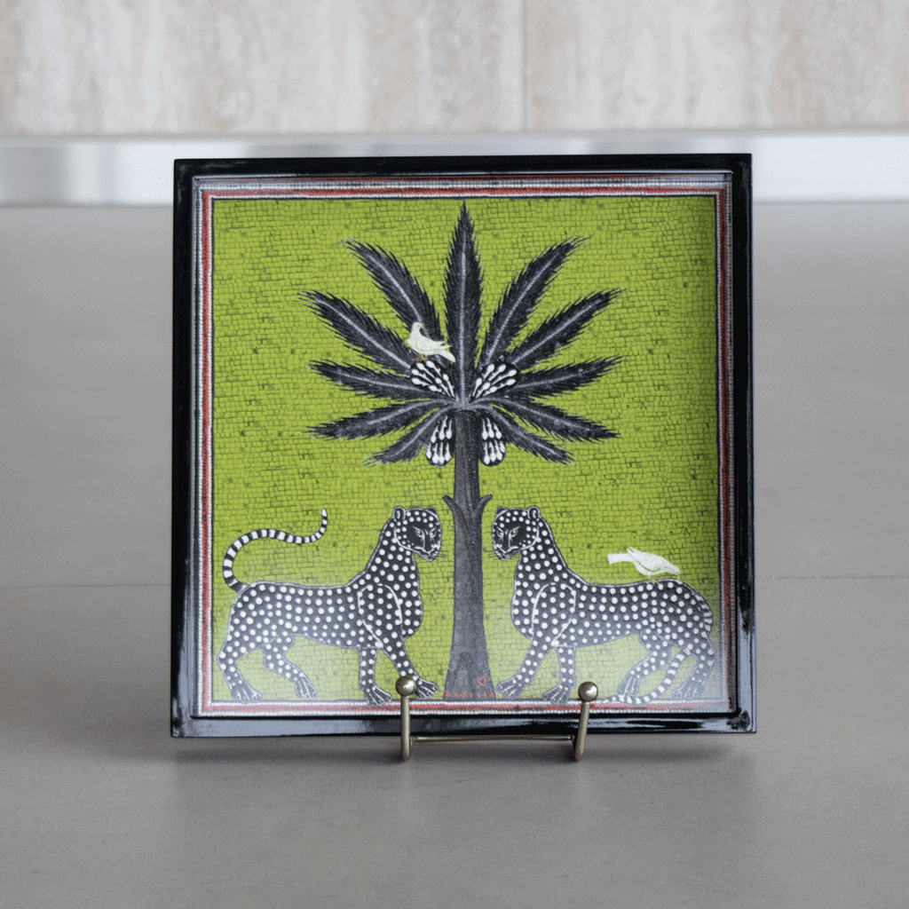 ORTIGIA(オルティージャ) スクエアトレイヒョウ柄グリーン