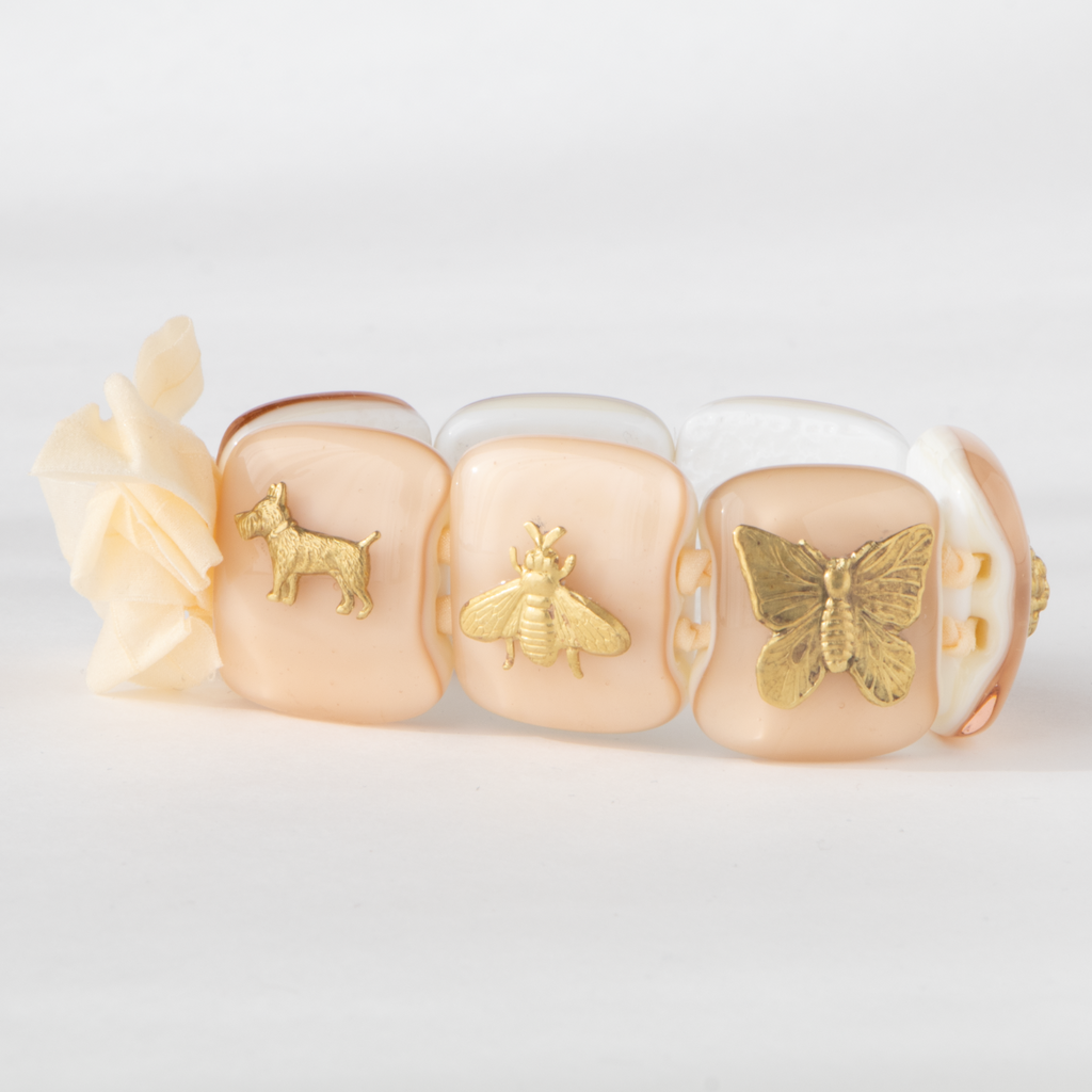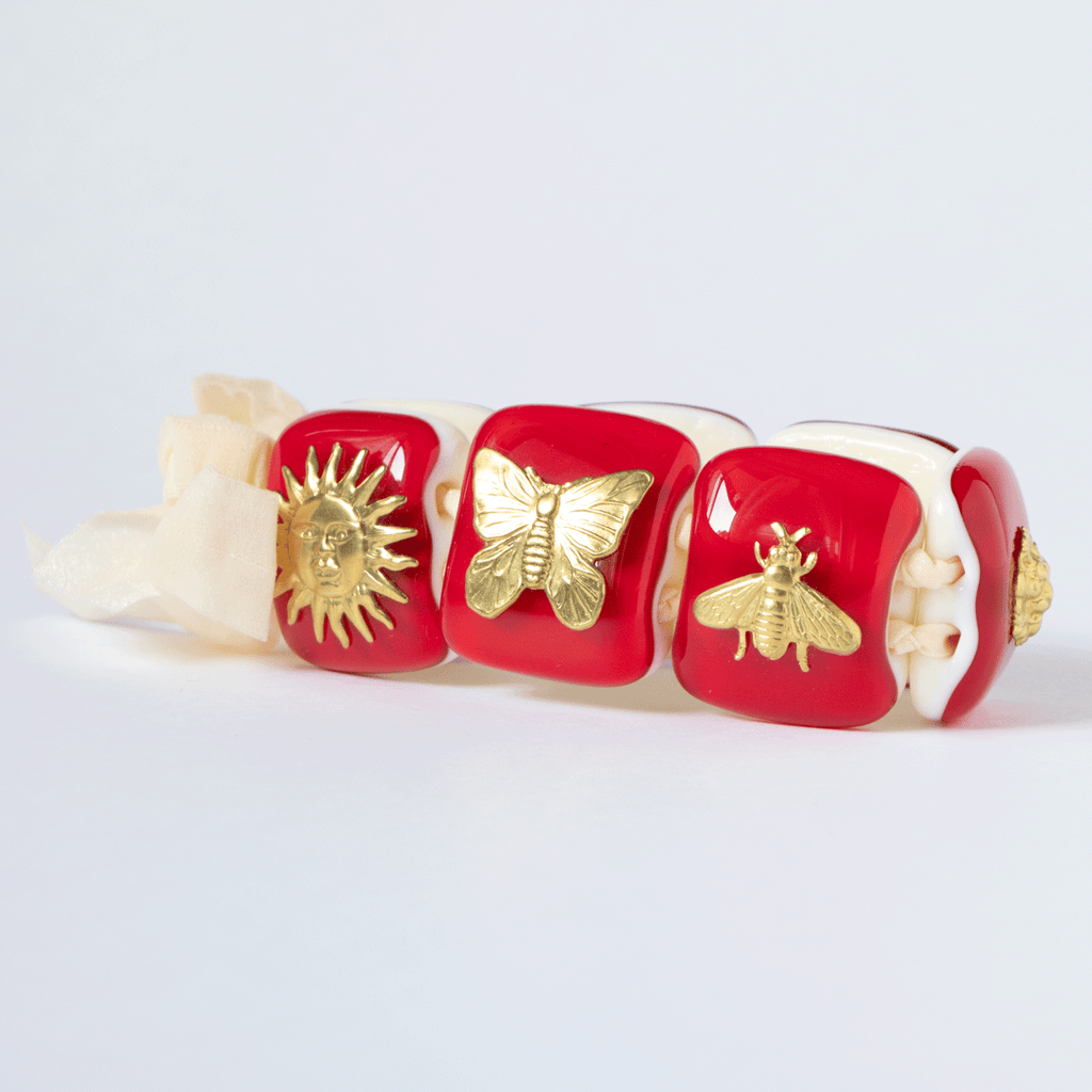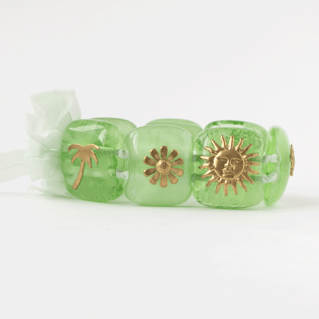 VETROFUSO(ベトロフーゾ)はイタリアで1992年設立のインテリアブランド。 デザイナーのダニエラ・ボレッティが色鮮やかなガラス細工に様々な素材を組み合わせることで、独創的なデザインを多数生み出しています。真鍮で作られた太陽や蜂などのハッピーモチーフが付いたガラスアクセサリーは全てTempo別注オーダー商品。ムラーノグラスを100%使用した、カラフルだけど上品な雰囲気が漂う、日本には少ないイタリアらしいアクセサリーです。