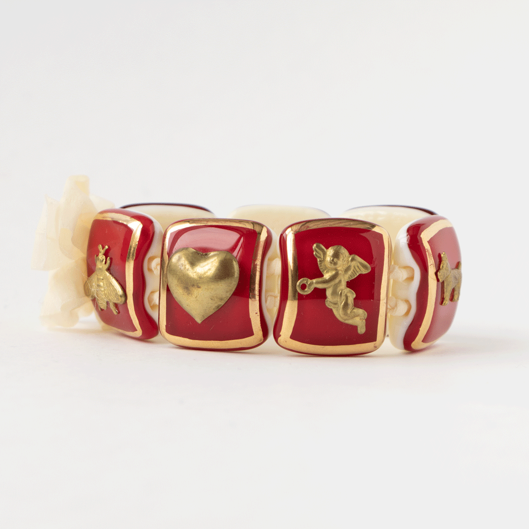 VETROFUSO モチーフブレスレットM レッド(枠有り)xアイボリー 77302□