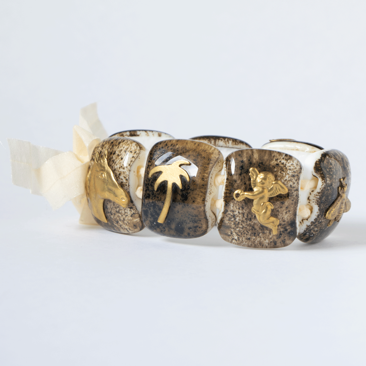 VETROFUSO モチーフブレスレットS マーブルブラウンxアイボリー 59002