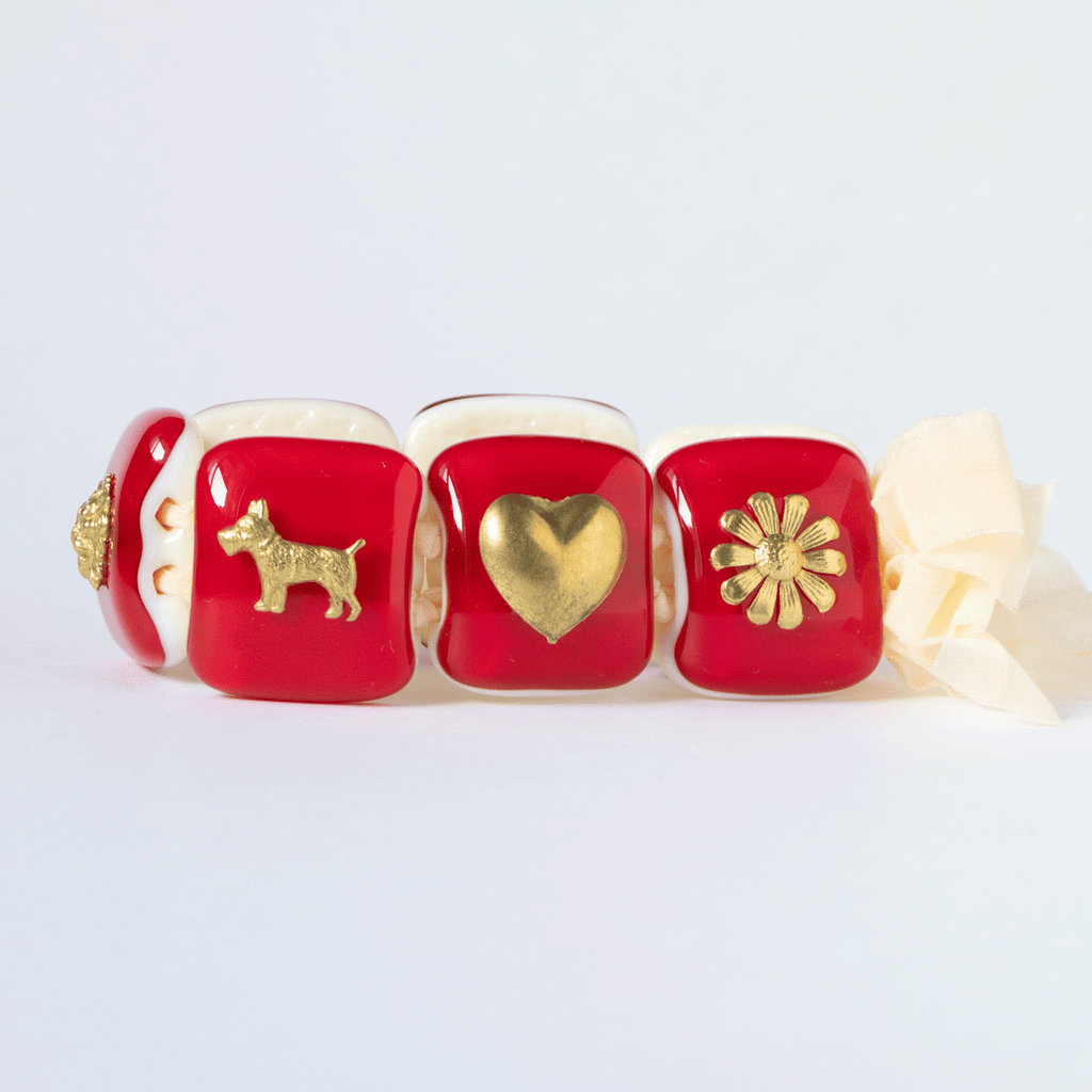 VETROFUSO モチーフブレスレットS レッドxアイボリー 57802
